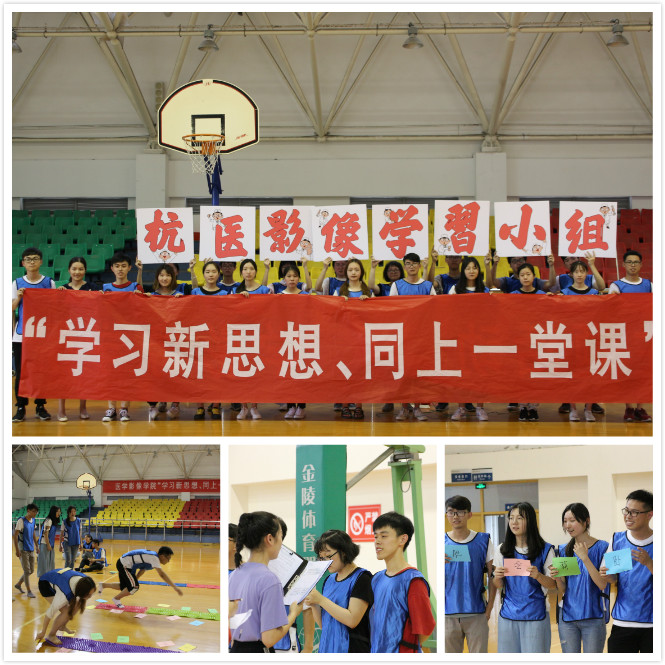 6月19日中午,医学影像学院将“学习新思想,同上一堂课”活动搬到了体育馆二楼,开展了一场别开生面的趣味课堂,学院习近平新时代中国特色社会主义思想学习小组成员积极参加。 活动深入宣传习近平总书记在北大座谈会上的讲话精神,以习近平总书记为青年人提出的“爱国、励志、求真、力行”四个希望为核心内容,小组成员们分为五组,进行爱国主义诗词、红歌折返跑填空,齐心协力拼写成语,党的理论知识及医学专业知识判断和选择等活动环节间的比拼,不仅提升了学院学习小组成员间的团队协作能力,更加强了同学们对新时代中国特色社会主义思想与自身成长相结合的深层次理解与巩固。
